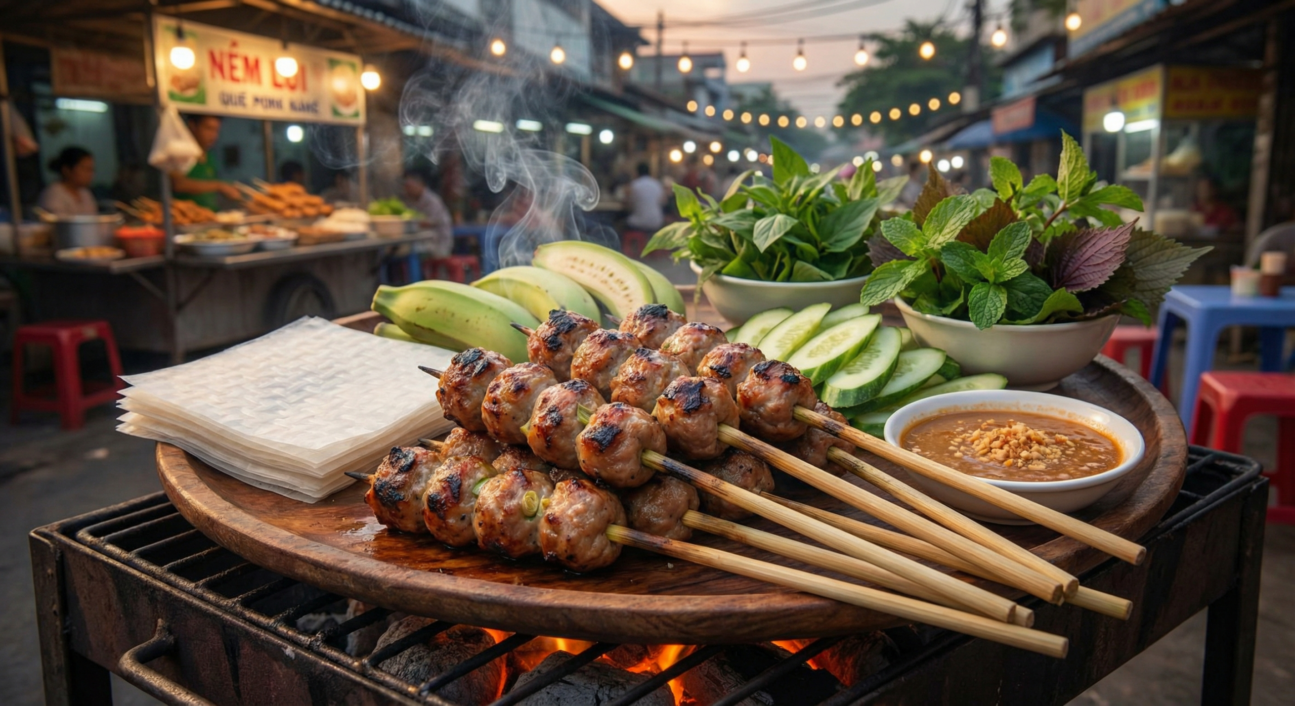 フエの街角で竹串に刺した肉を炭火で焼く香ばしい匂いがしたら、それはネムルイ(Nem Lụi)です。レモングラスの香りが漂う豚肉の串焼きは、フエを代表するストリートフードの一つです。 ネムルイとは? ネムルイ(Nem Lụ […] [...]
